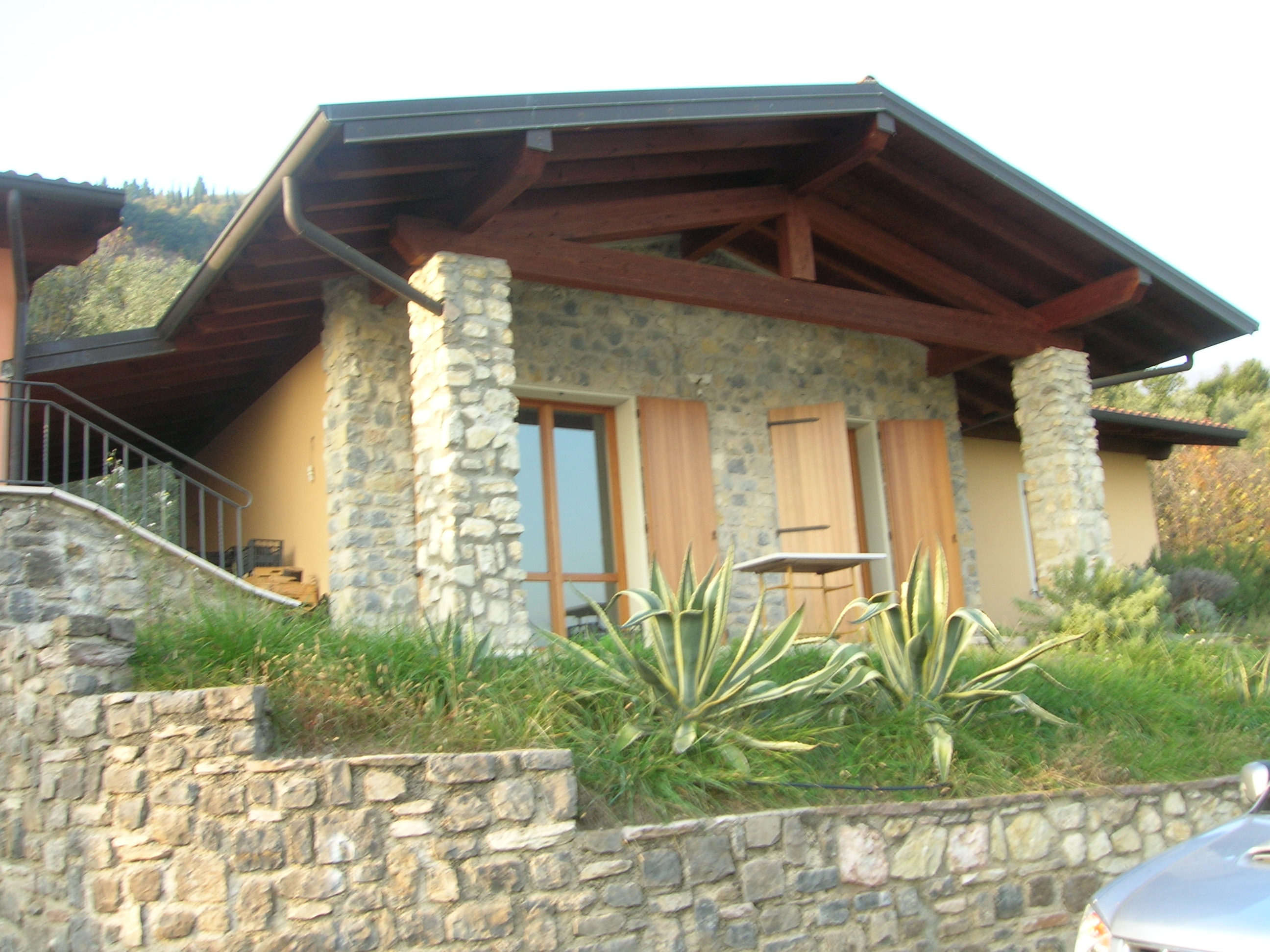 La villa è immersa nel verde con 1500mq di terreno piantumato ad ulivi e gode di una vista lago fantastica.