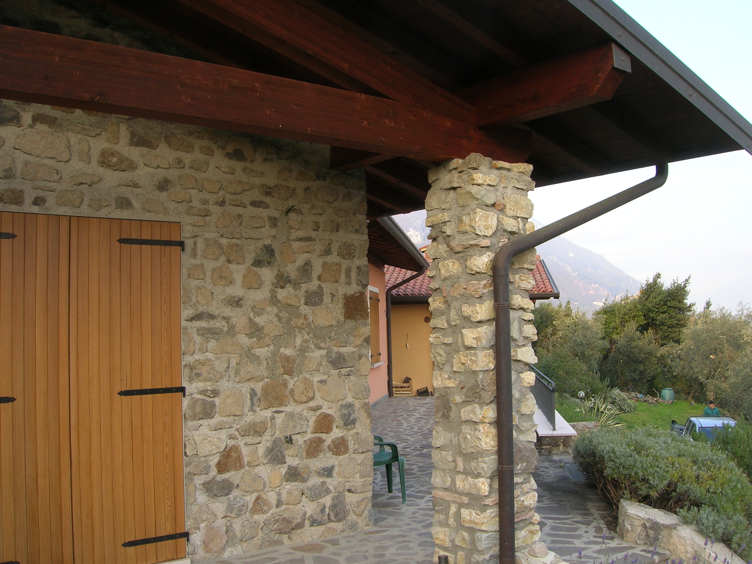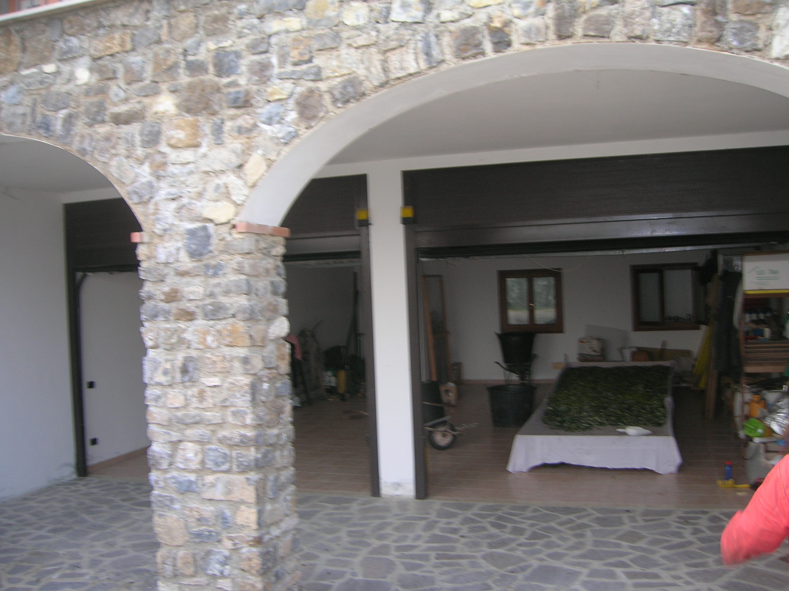 Villa bifamiliare immersa nel verde degli ulivi, al piano terra un doppio garage con lavanderia e bagno , una zona di 150 mq da utilizzare come abitazione e un giardino di 400mq.